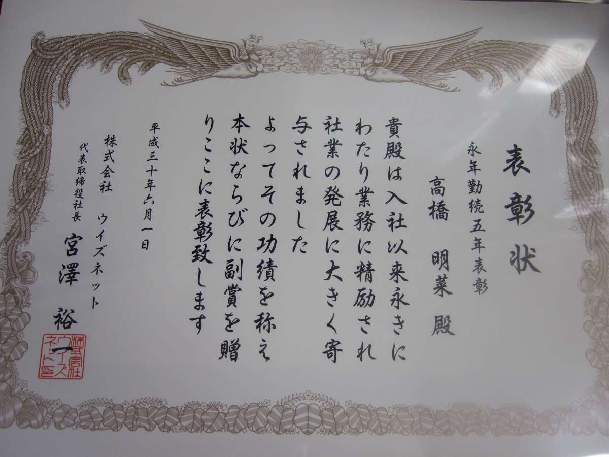 今日はスタッフの事ですが、永年勤続という事で、表彰されたスタッフがいます☆