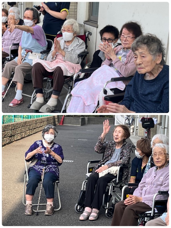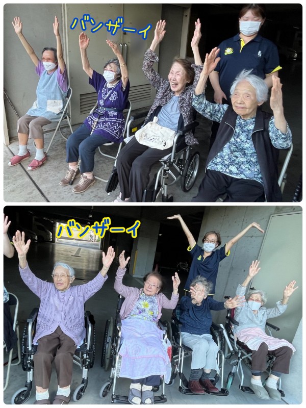 最後の花火が上がり終わると、ご入居者様が「バンザーイ」を始めました。
