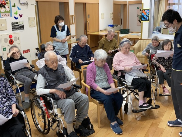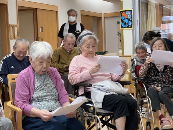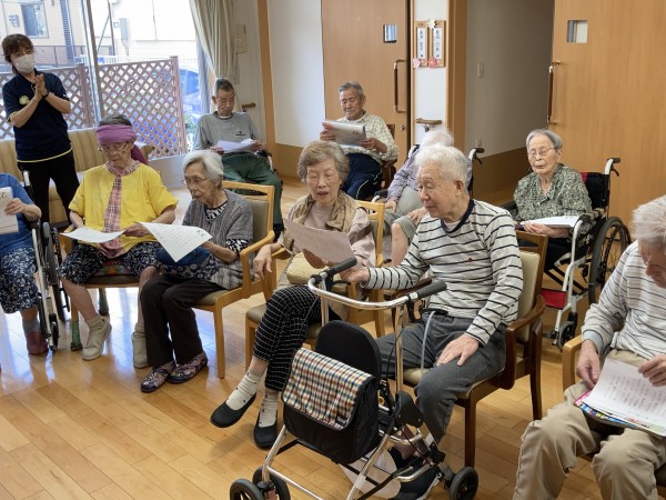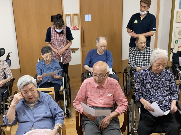 その月の歌を歌うのもお誕生日会恒例となりました。今月は【われは海の子】と【夏の思い出】です。