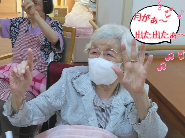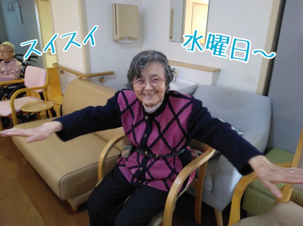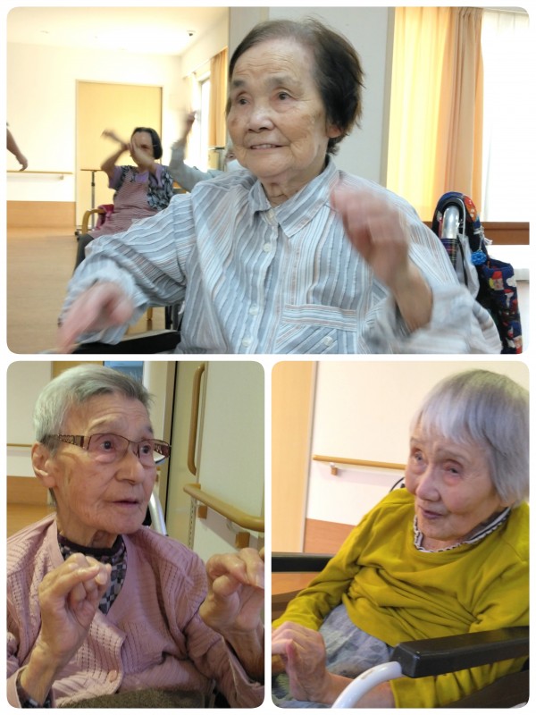 やわらかく入居者様を包みこみながら、しっかりリードするこうめちゃん体操。