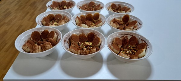 美味しいフルーツの上にチョコレートの粉をかけてトッピング致しました。皆様が「わぁー、すごいですね!嬉しいです。」と嬉しそうに