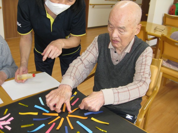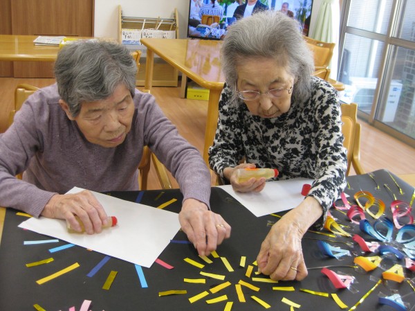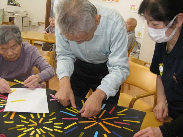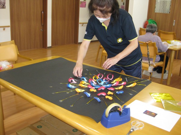 花火の貼り絵を行いました( ^ω^)・・・ 職員も一緒に貼っておられました!