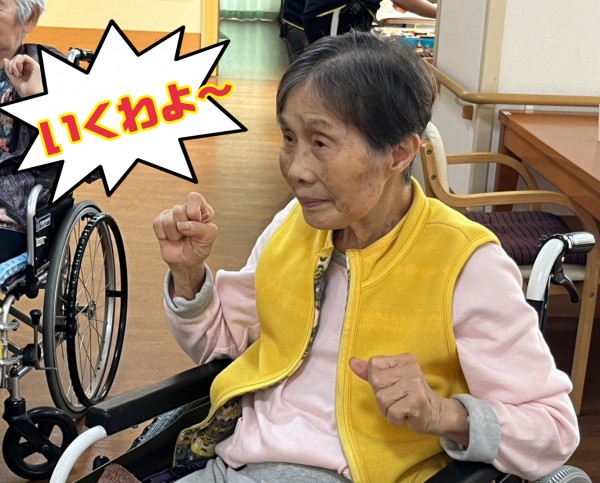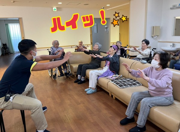 門田ケアスタッフの号令で、声出し開始!