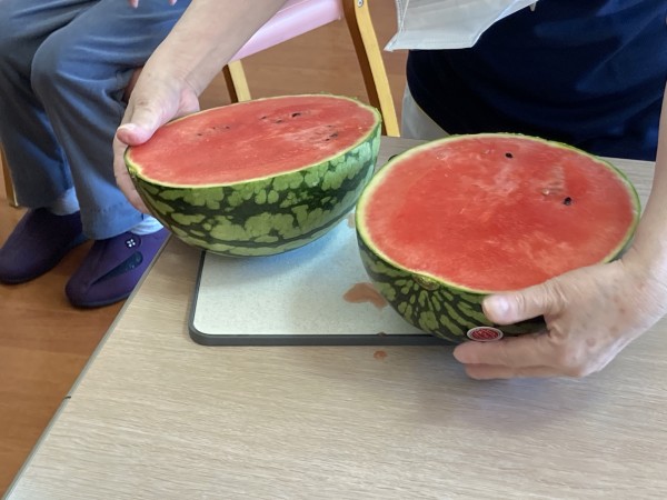 先日、職員の息子さんからスイカの差し入れがありました(*^▽^*)