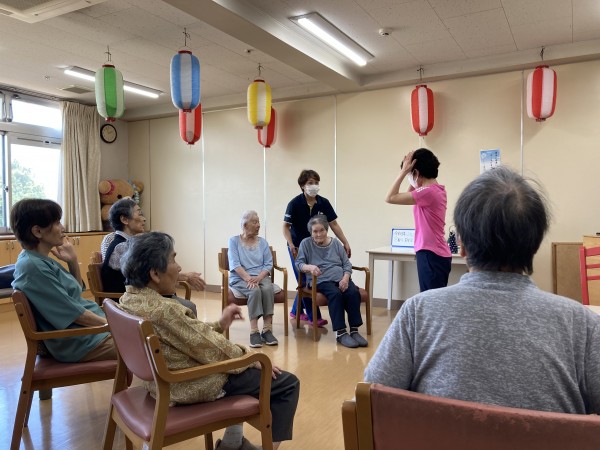 ひとりひとりのご入居者様に声をかけてくれます。まずはご挨拶から…。この後はいよいよ体を動かしますよ~(^O^)/