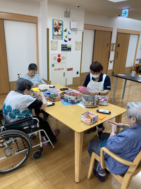 午後のひと時…美空ひばりさんの歌を口ずさみ、おしゃべりをしながら皆さん何か作っています。