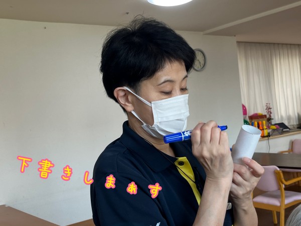 「目が悪いから上手く描けないよ」と仰る時には、職員が下書きをします。