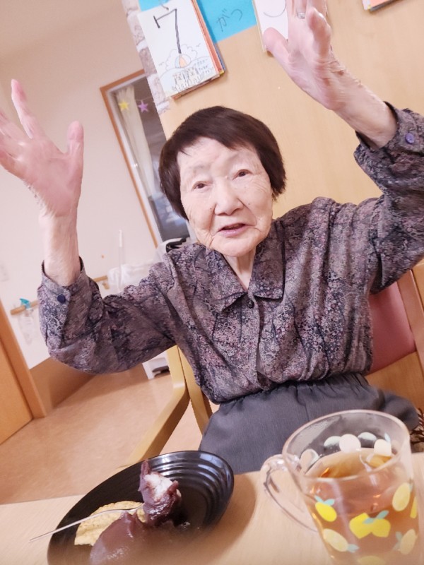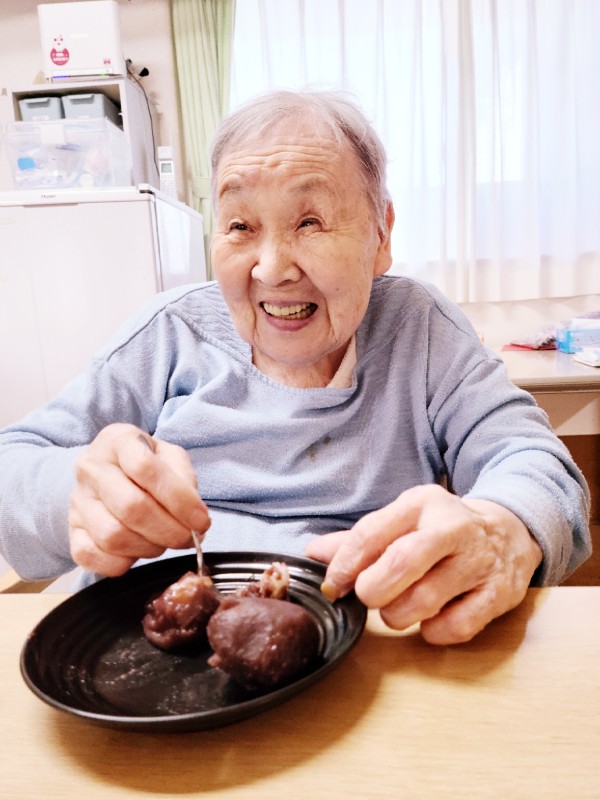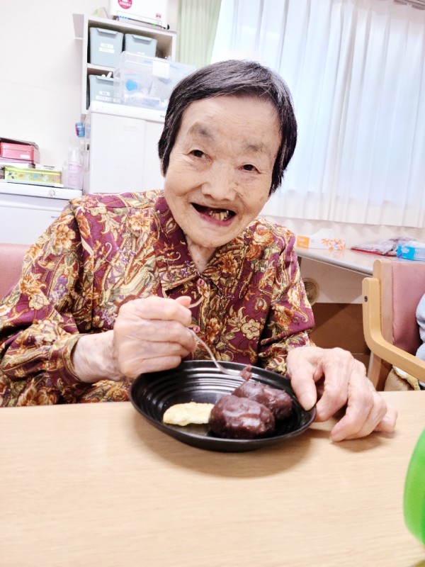 甘いものが大好きな2階のご利用者様たちは大きなあんころ餅に大喜び!!