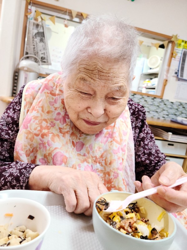 ホーム長が錦糸卵を作ろうとしていると、