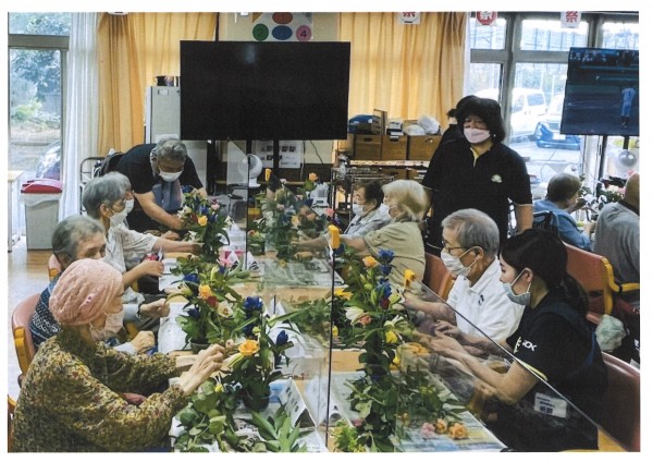 本日午後のレクリエーションは【フラワーアレンジメント教室】