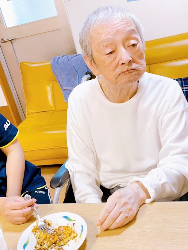 おやつレクの日に、娘様とお孫様が面会に来て下さっていたM様。
