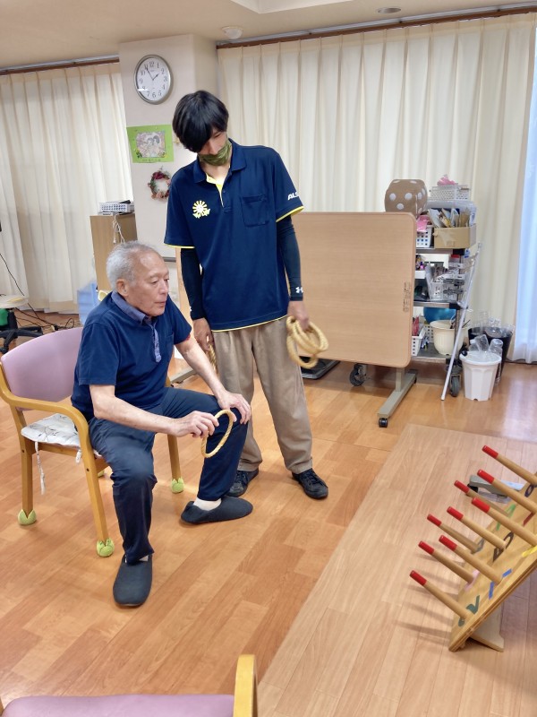 1人9投投げて、輪投げ台にある点数の合計点で順位決めました。
