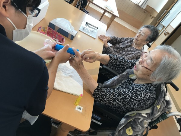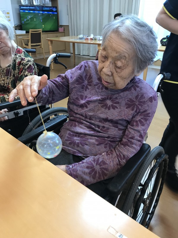 本日は納涼祭のヨーヨー釣りで使用するヨーヨーをご利用者様と作っているご様子を紹介したいと思います。