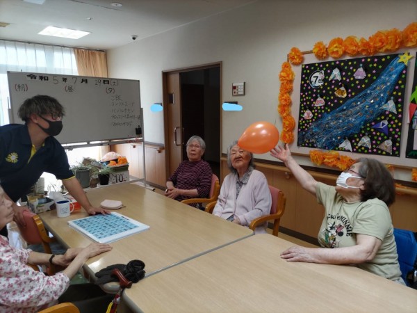 風船バレーをしたり、ぬり絵をしたり、おもちゃで遊んだりと、様々楽しまれております。