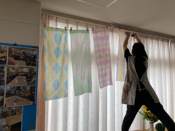「世界に一つだけの手ぬぐい」がフロアに飾ってあります♬