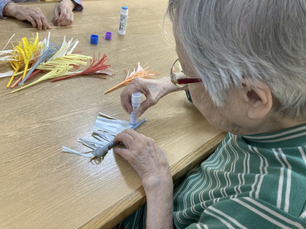 折り紙を使ってススキを作って頂いてます。