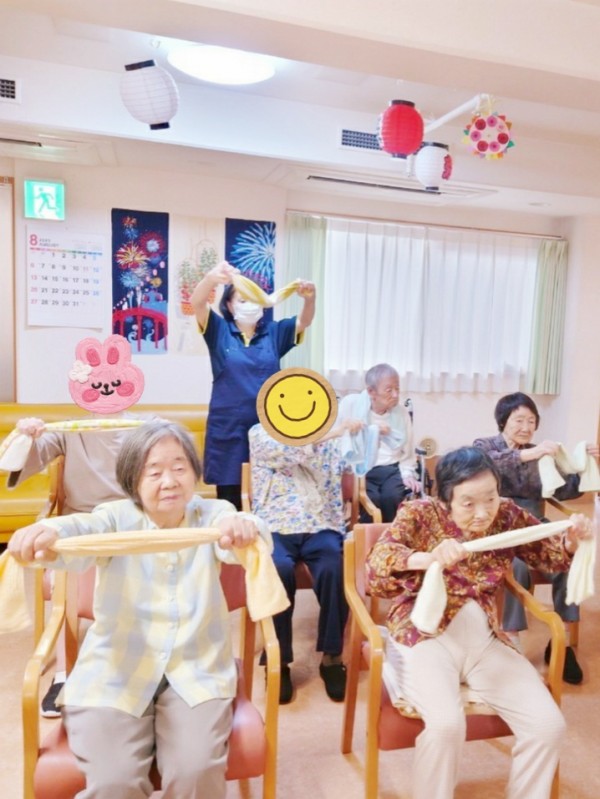 グループホームみんなの家大宮三橋 2023年8月3階 毎日ノーアエクササイズ&AKトレーニング(タオル体操)