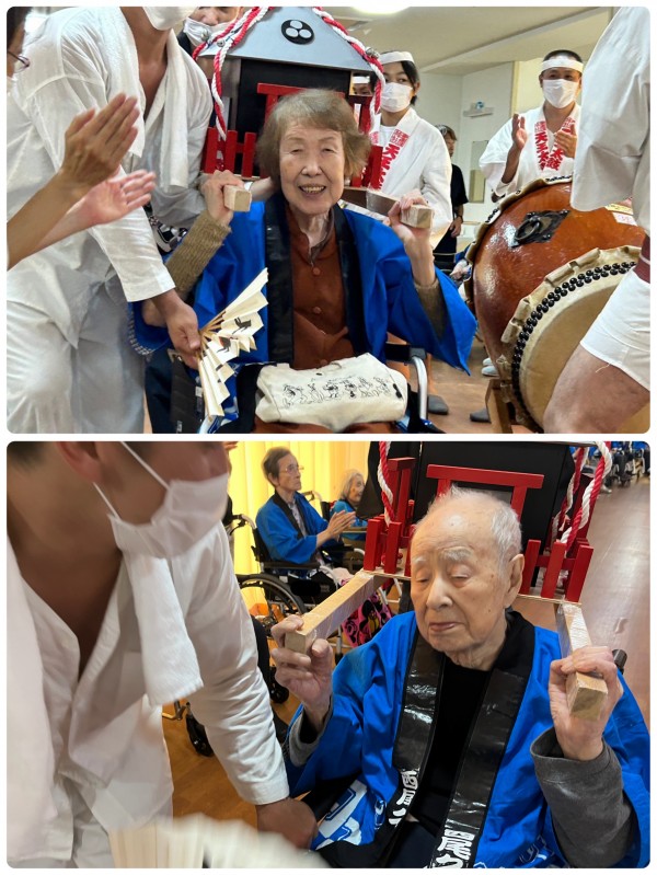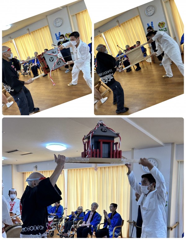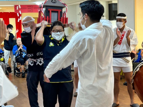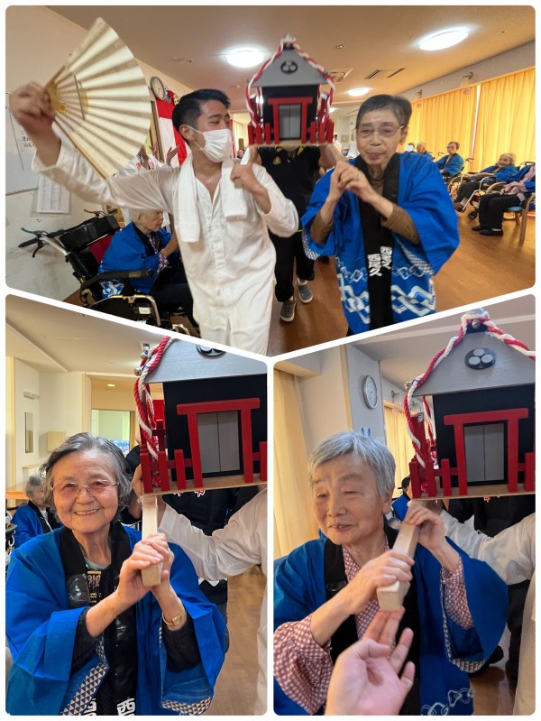 ご入居者様が神輿担いで「ワッショイワッショイ!」