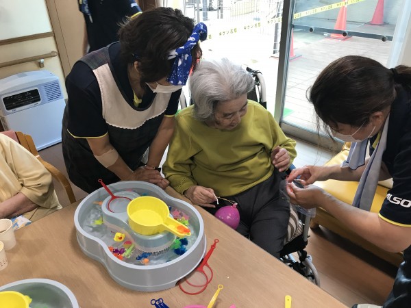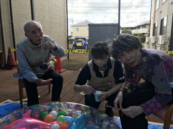神輿の後はウッドデッキにてヨーヨー釣り‼