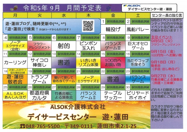 そんな本日の遊蓮田は9月の予定表が完成しましたのでそちらのご紹介となります。