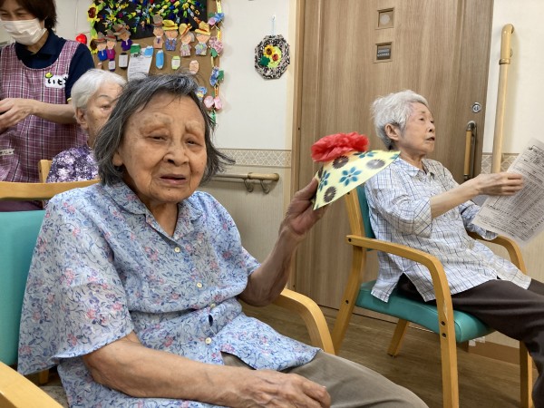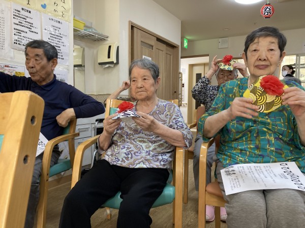 手作り花笠を持って、歌も歌いながら元気に参加してくださいました。