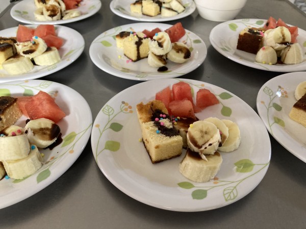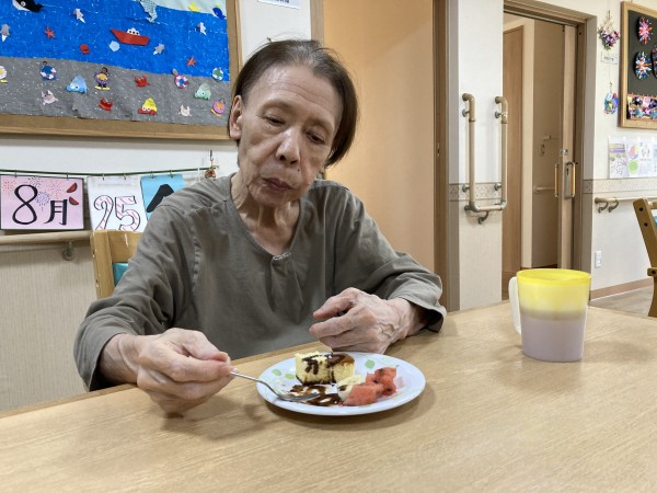 おやつには、チョコバナナ、カステラスイカの盛り合わせを召し上がっていただきました。