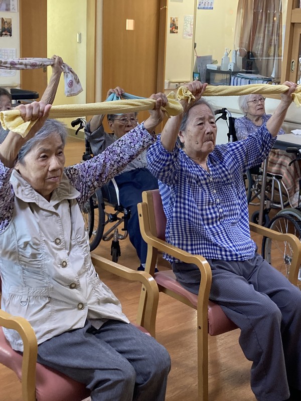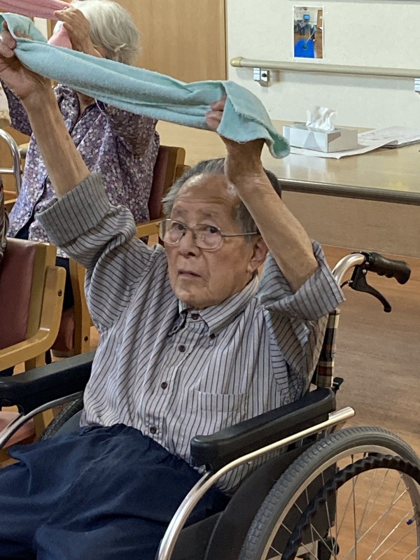 体操は食事の前に口腔体操など日々行っておりますが、大人数での体操は日々の体操とは違って力が入るのでしょうか…皆様真剣に楽しそうに行われていました。