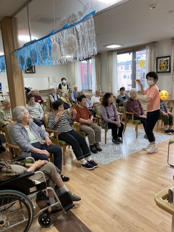本日は地域運営推進会議・家族会の前にご利用者の皆様が日々どんな体操をしているのか、出席者の皆さんに様子を見て頂きました♪
