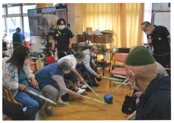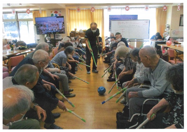 本日午後のレクリエーションは【棒サッカー】