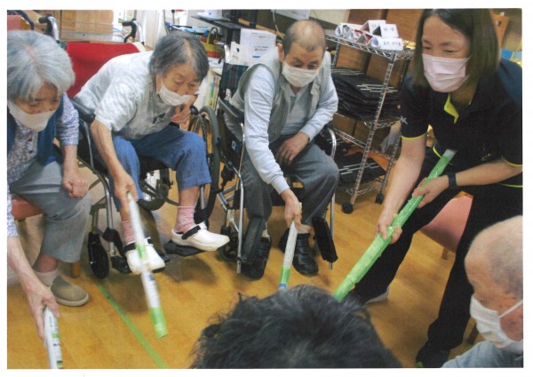 その名の通り、新聞紙を丸めた棒でボールを敵陣にゴールさせるゲームなのですが、これがなんと、怖いくらい盛り上がります。点数が入るとゴールキーパーの方が責任を感じてしまい代わって欲しいとのことで職員がキーパーに。職員がキーパーになったとたん更にヒートアップ!キーパーを務めた職員は皆、筋肉痛の洗礼を受けました(笑)