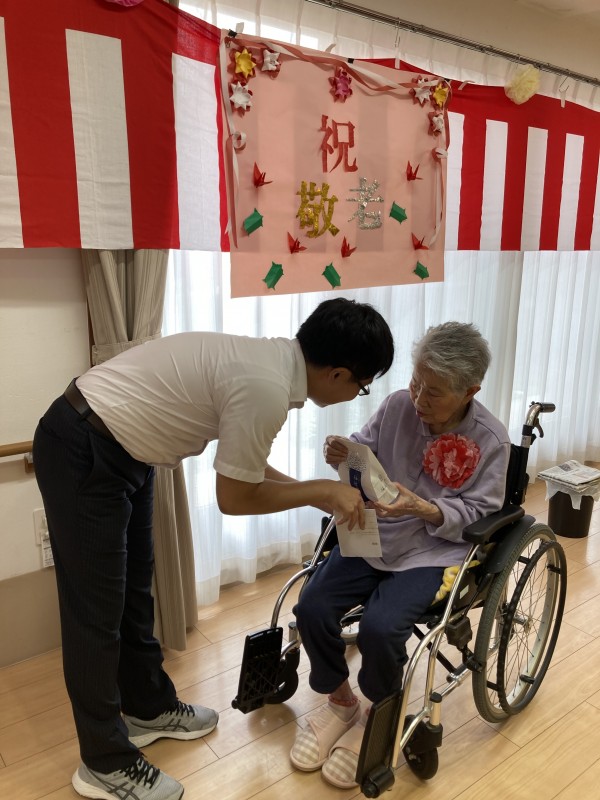 ★☆令和5年-敬老会実施-山田大誠ホーム長より白寿99歳祝い記念品贈呈2023年(^^✨