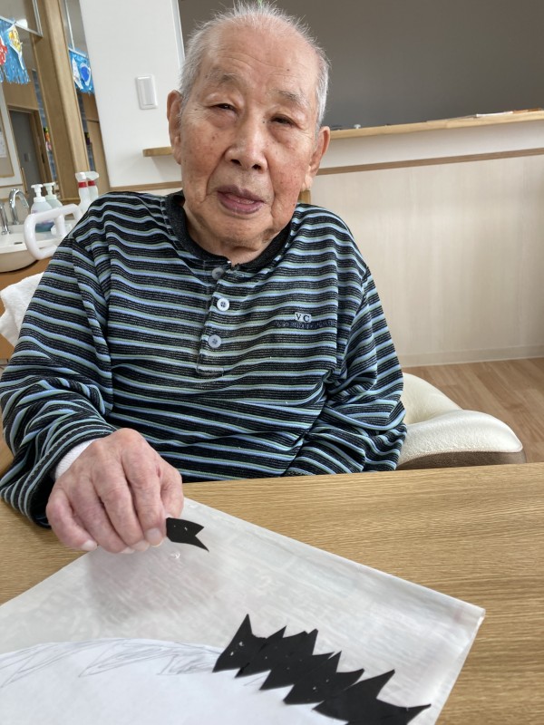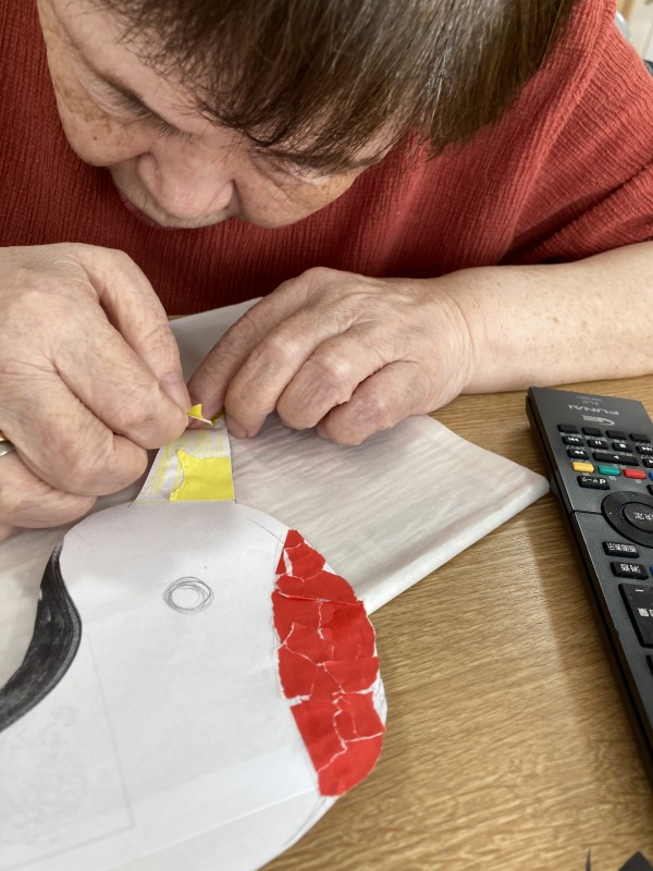 何の準備かなぁ?皆さんでそれぞれのパーツにちぎった折り紙を貼っていきます♪