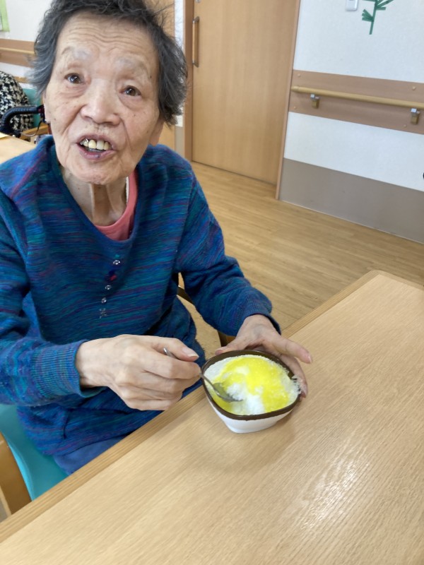 子どものころの話をされた後は冷たいのが苦手と話されたり方もかき氷を食べ笑顔が見られ夏の風物詩を楽しまれました。