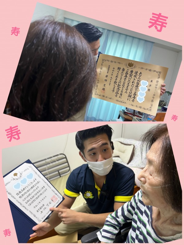 ご長寿様のお部屋に、荷物を抱えてやって来ました。