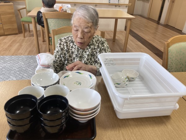 職員と一緒に朝のゴミ出し、お花の水やり、食器拭き等『手伝うよ』と言って下さり、いつも、ありがとうございます♪