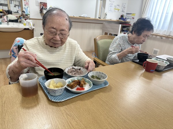 ご利用者様は『今日は何かのお祝いなの?』『敬老の日ですよ』『あら〜そうなの?』と話されている間に食べ終わってしまいました。