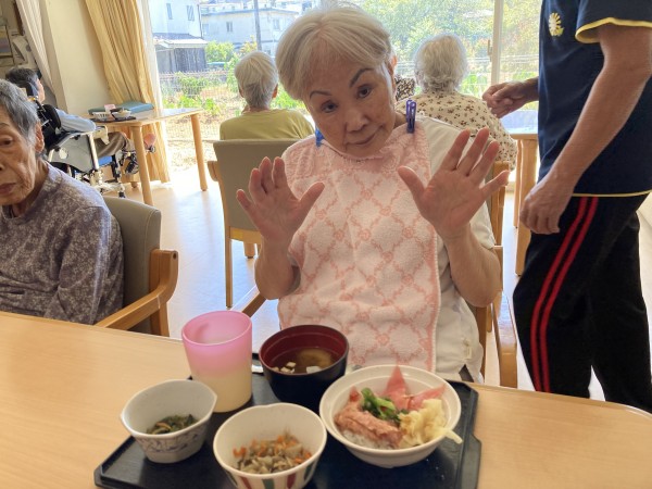 本日は敬老の日、お祝いに普段はあまり食べないメニュー、海鮮丼を召し上がっていただきました。