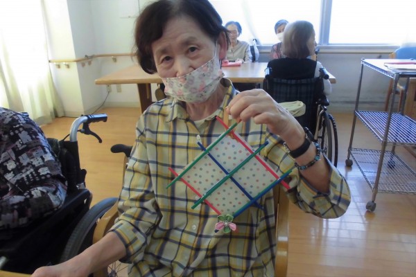 今回は、割り箸と折り紙を使用して、壁飾りを作ってみました♪