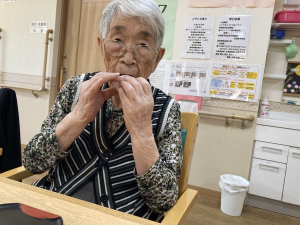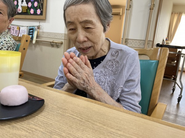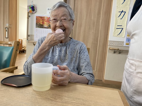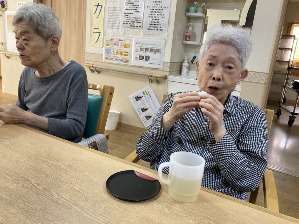 敬老会のあとのおやつでは、長寿饅頭を召し上がっ頂きました。