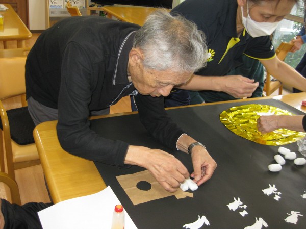 月やお団子を貼っていきウサギを貼っていきました( ^ω^)・・・