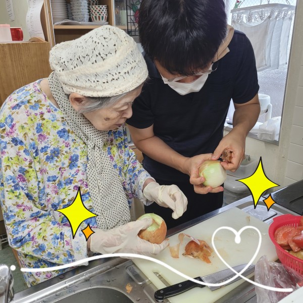 今回は4階のリーダーA職員とM様の2人でキッチンで準備を行ないました。