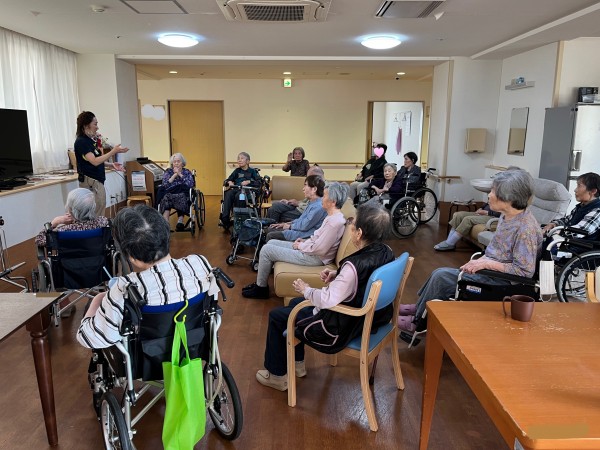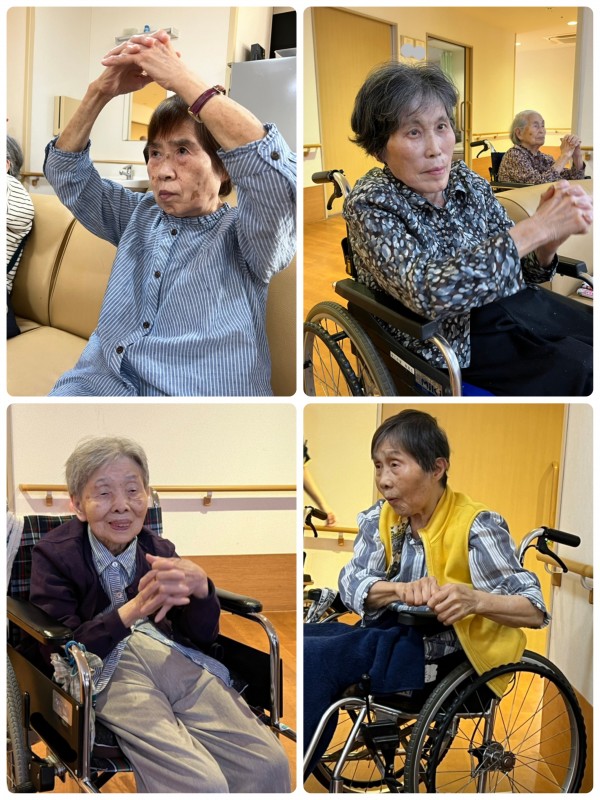 職員さんが先導し、ご入居者様が楽しみながら体を動かしています。