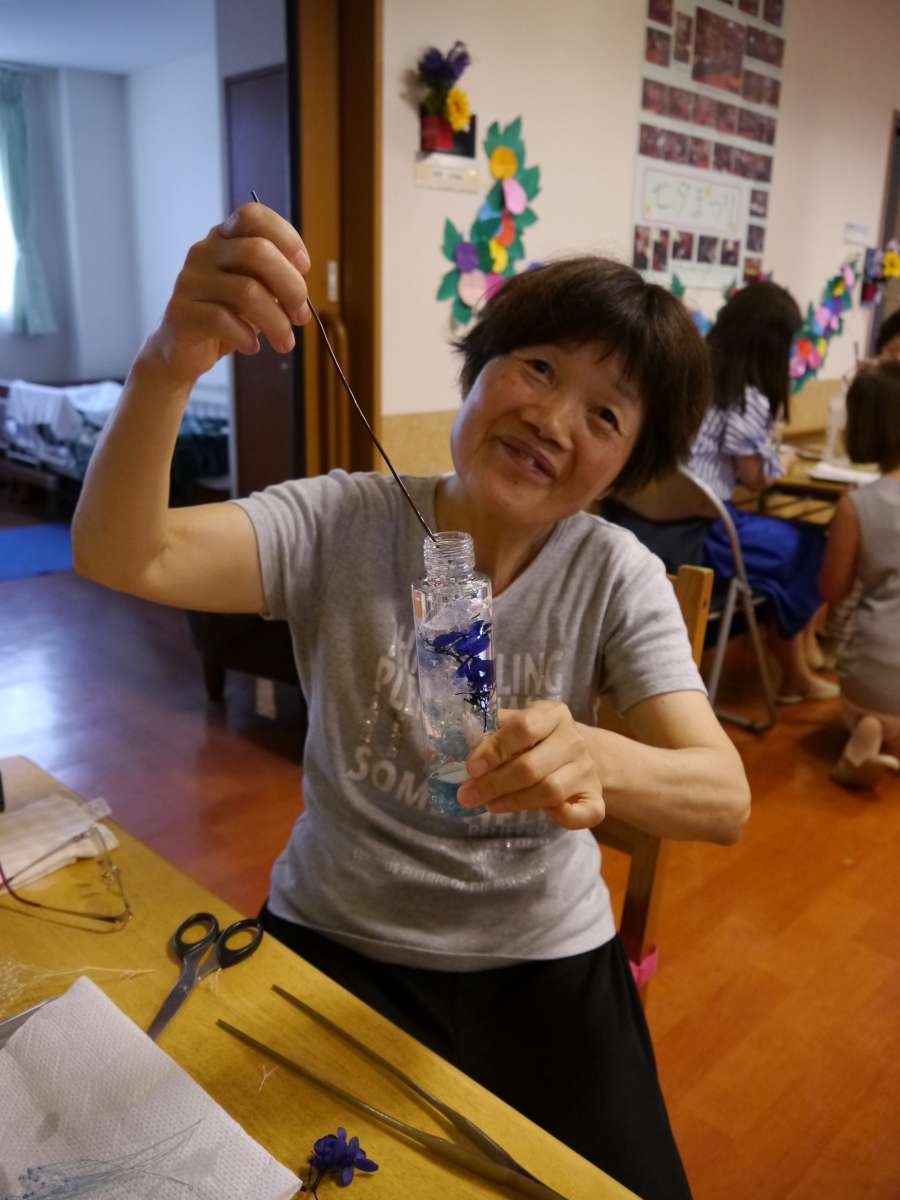 男性の方も参加され真剣な表情で、ご自分だけのハーバリウムを作られました。