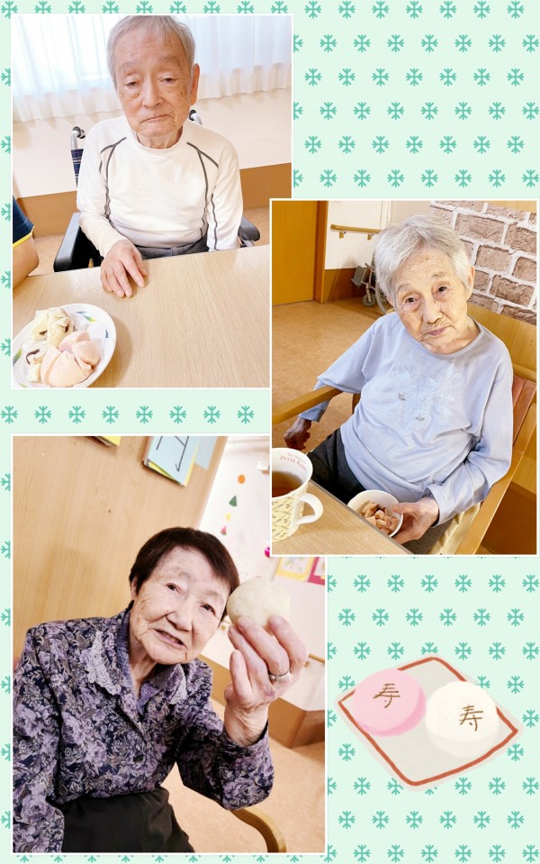 グループホームみんなの家大宮三橋 コレお饅頭?!大きな紅白饅頭でお祝い♪~敬老会おやつ編~