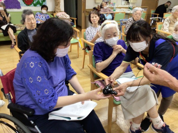 市販の物はプラスチックの物が増えているとの事ですが、陶器のオカリナを間近で触れさせて頂き、「いいの?」と怖々ながらも持ってみると「重たい〜」とその重量を実感した次第です(๑˃̵ᴗ˂̵)