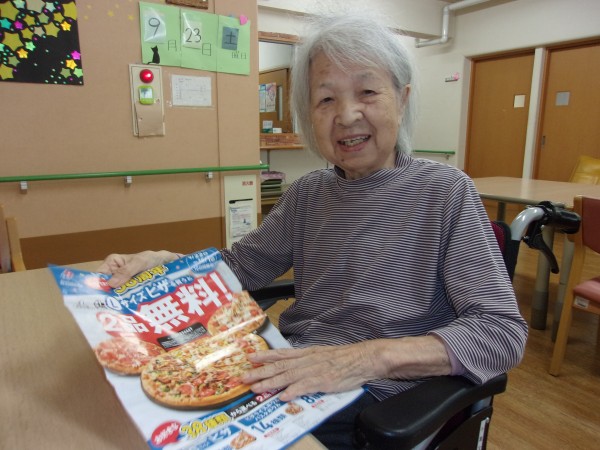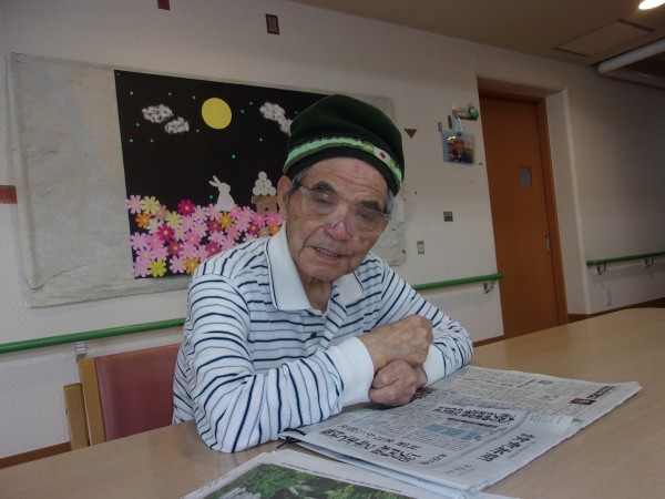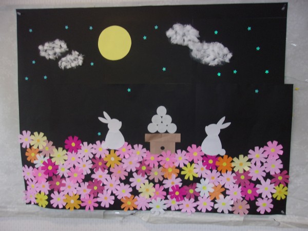 張り出すと入居者様も新しい壁飾りに興味津々♪(笑)