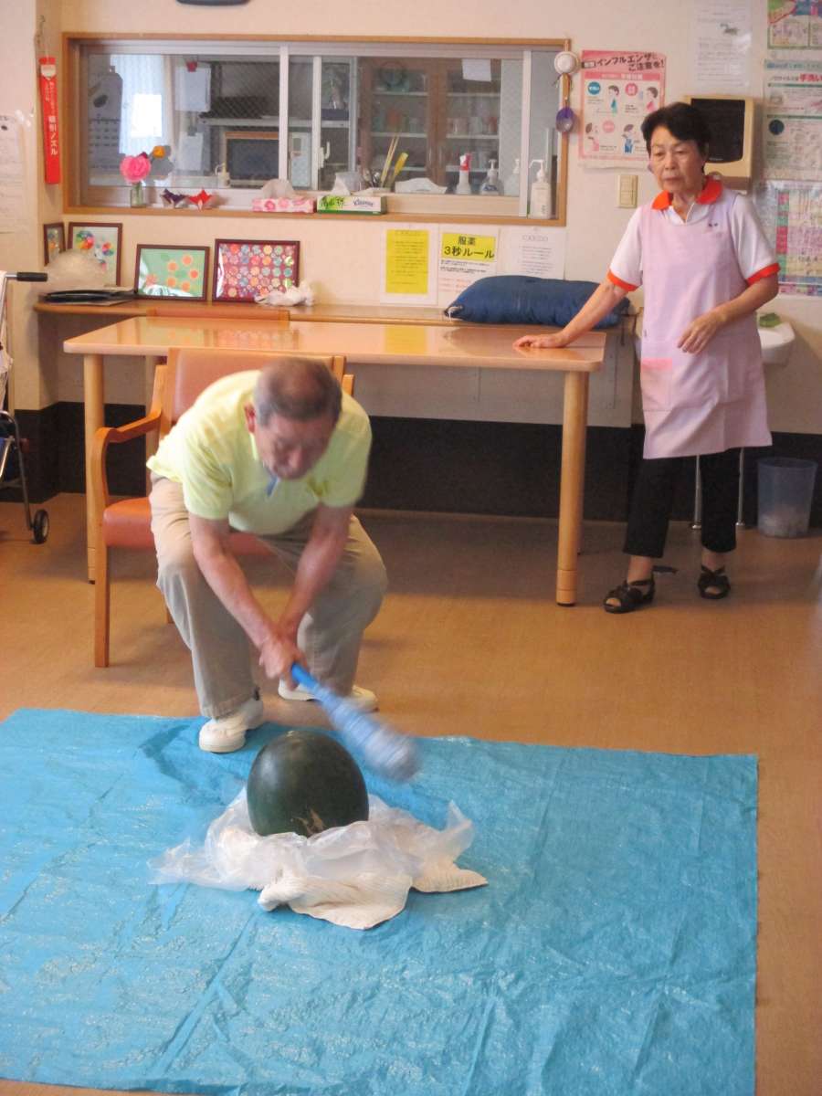 金魚すくいや、御家族様がご提供くださいましたスイカでスイカ割りを行いました。