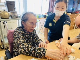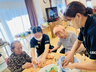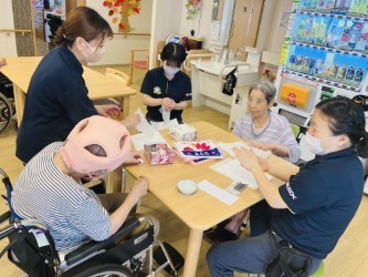 お昼寝から起きて飛び入り参加したお客様も職員と一緒に笑顔でやってくれましたっ!
