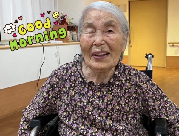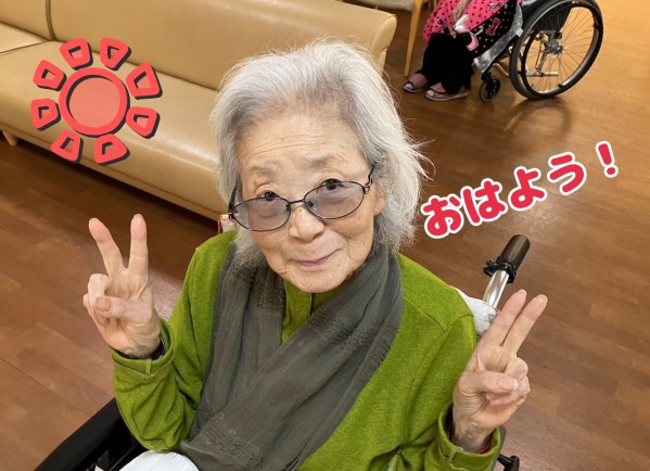 ご入居者様が、元気な笑顔でお部屋からリビングにいらっしゃいます。