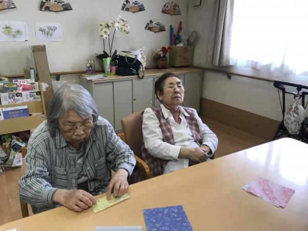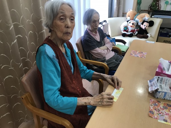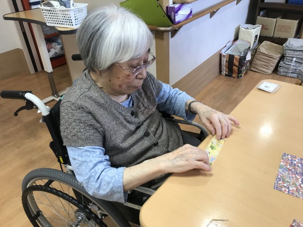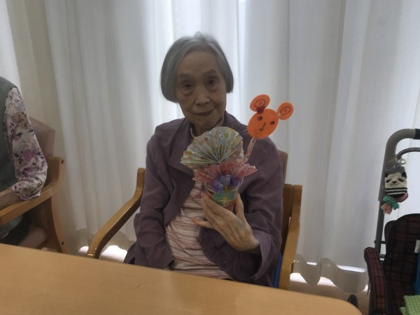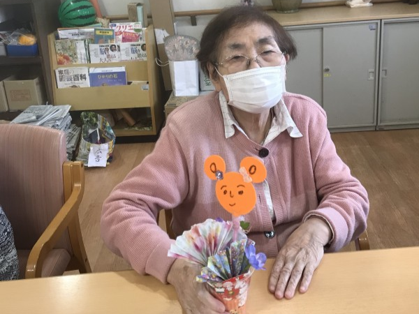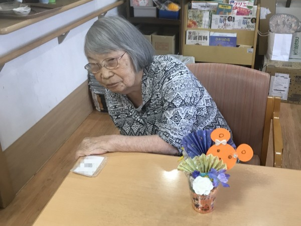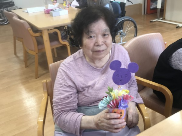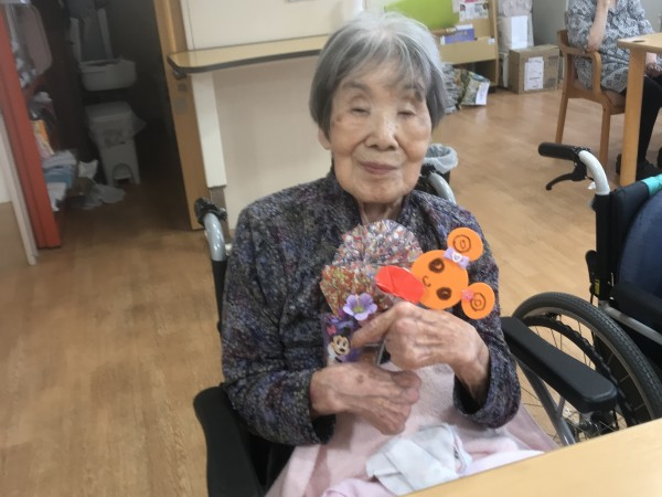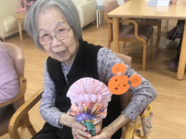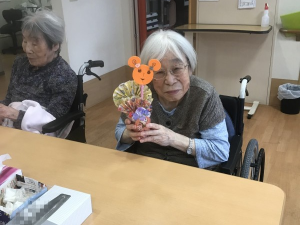 もうすぐハロウィンですね♪ハロウィンの小物を作りましょう!というお話になり、パンプキン色のフエルトや折り紙を使って工作レクをしました♪イベントらしいにぎやかな作品になりましたね!フエルトに描いたお顔がかわいいです!疲れない様に3日ほどかけてゆっくり作成しました♪